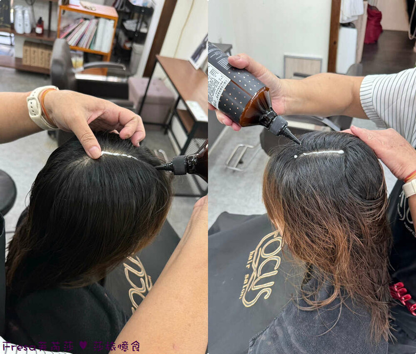 每個部位都有放上頭皮隔離霜,避免藥水刺激頭皮.