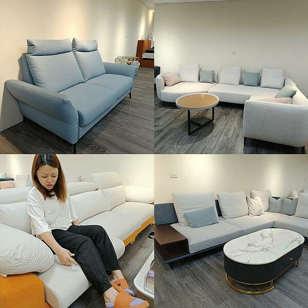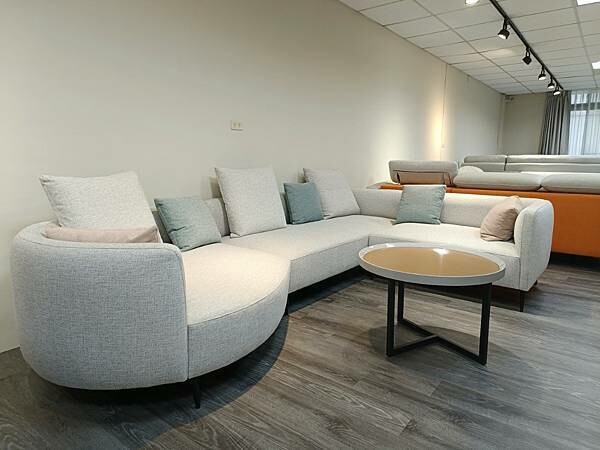 看到沙發讓我眼睛為之一亮,時尚又設計感像低背板的L型沙發,而抱枕算是硬挺的裡頭塞滿羽絨也不會讓人越坐越往下滑,就讓人很心動價位大約11萬上下。