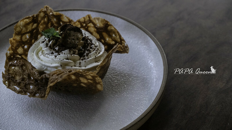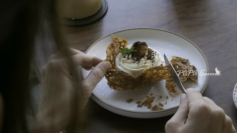 脆餅花盒,之前就看到樂樂貼文,我們馬上問老闆今天有這個嗎!本尊很美,脆脆花盒裡是鋪墊蛋糕與奶最上面則是提拉密蘇 -妥妥花樣甜點,怎吃!敲裂餅乾沾裹著吃…沒想到焦糖脆餅竟然走實力扎實派逼我暴力破壞…說好的氣質人設呢?!!