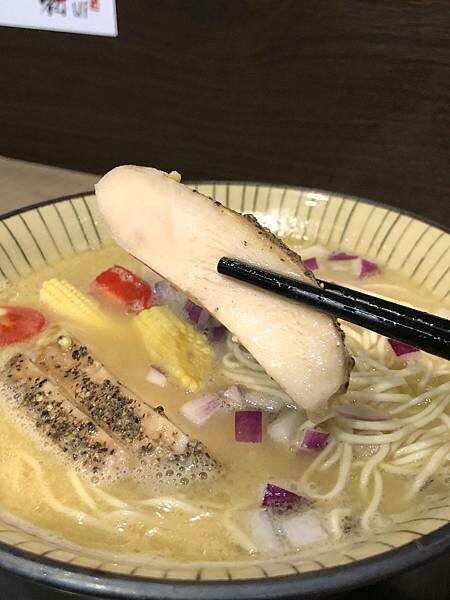 初ui拉麵的雞白湯喝起來的味道還滿濃郁,