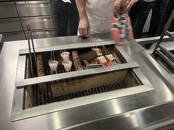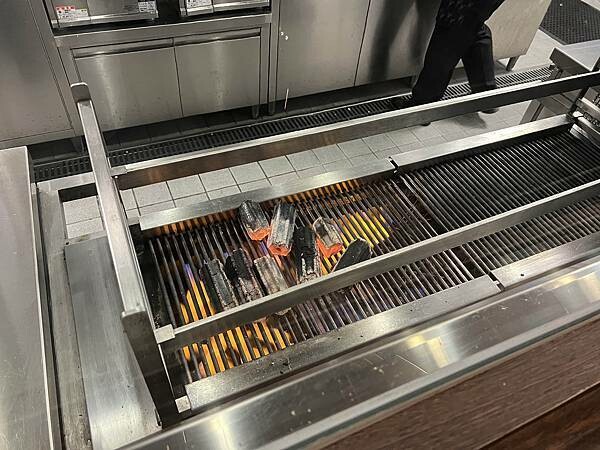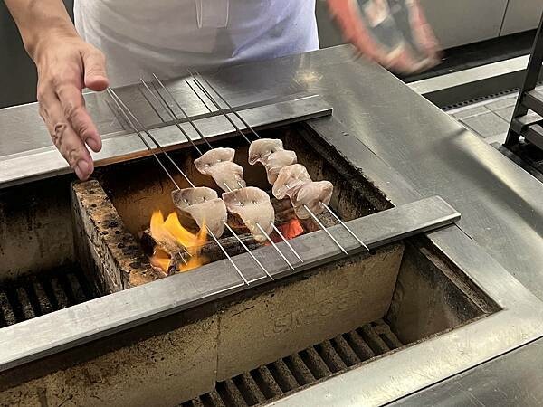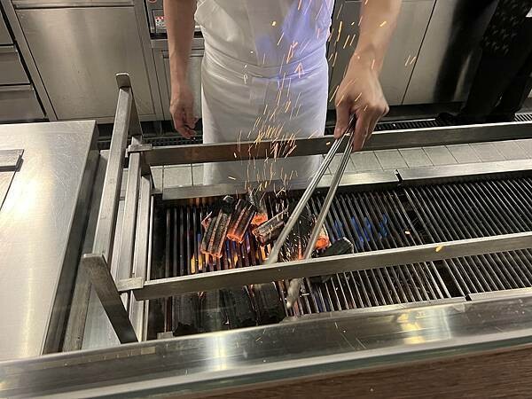 透著玻璃可以看到日籍主廚正在負責處理炭火