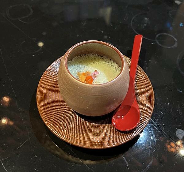 底下的溫泉蛋配上醬汁一起吃,是一種嫩中帶點鮮味的感覺。
