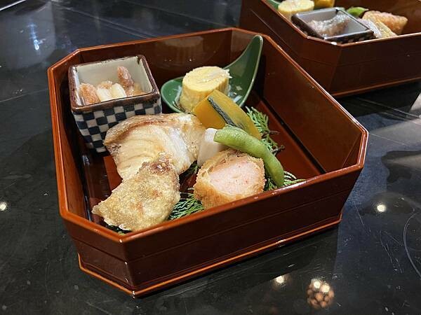 青甘下巴南蠻漬(左後),玉子燒(右後),