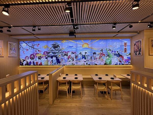 牆壁上除了食物的照片之外,還有用上日本天守閣的背板。