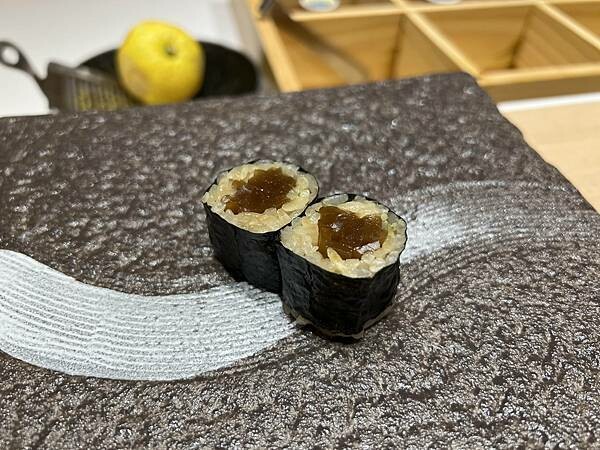 台北美食【辰壽司】松山區/無菜單日本料理/超好吃的安康魚肝 酒煮無花果最中餅/黑鮪魚赤身 中腹 下巴 三重奏/好吃的小肌 500盤 江振誠/紫海膽/馬糞海膽