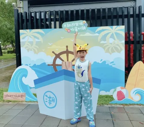 松鶴活動中心廣場,透過水彈射擊,水彈擊中靶心會發出聲響,表示過關。