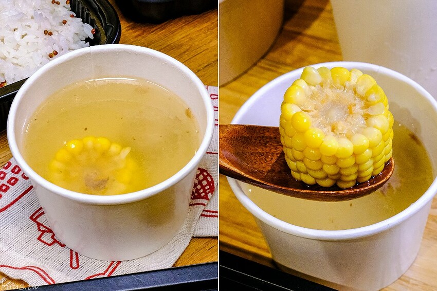 商務九宮格會議餐盒內有附一碗熱湯,這天的熱湯是冬瓜玉米湯,冬瓜熬煮至軟爛程度,讓甜味融入到湯頭內,玉米本身的甜味也有保留住,很不錯喝。