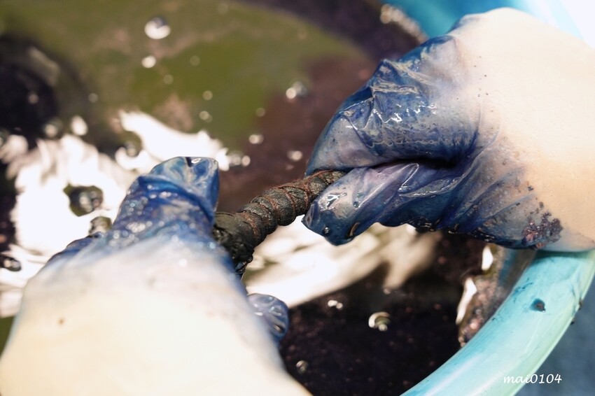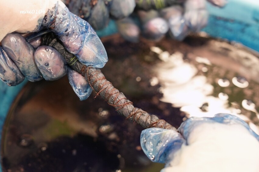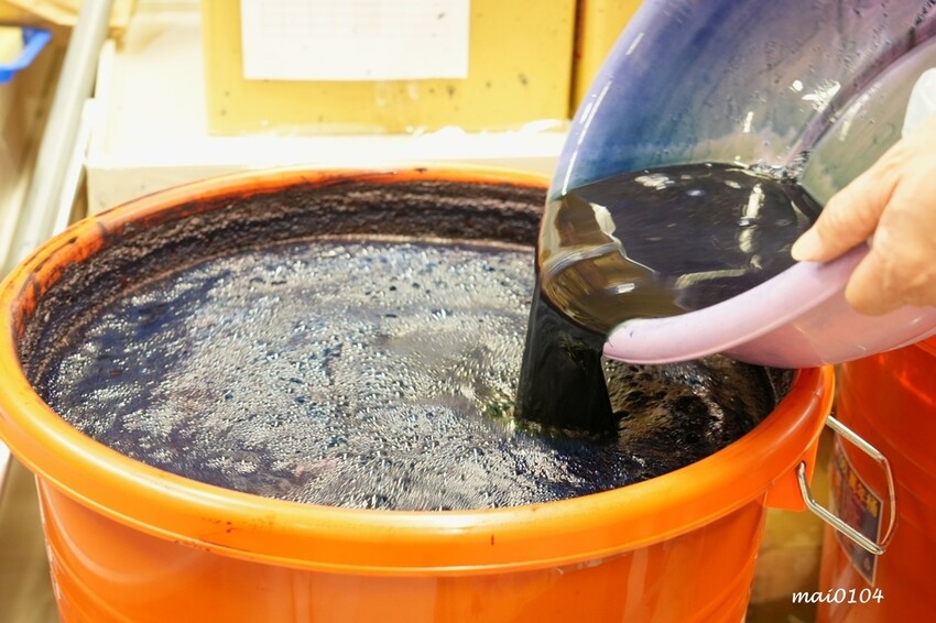 藍染的染劑成本高,課程使用完後倒回原本的大缸中