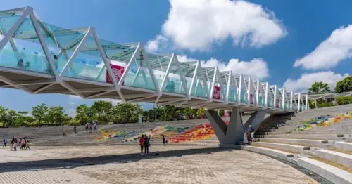 現代化的建築環境中搭配著不同型式的梯田造型,現代與傳統的特色並存,很有創意