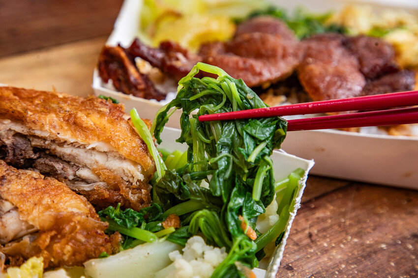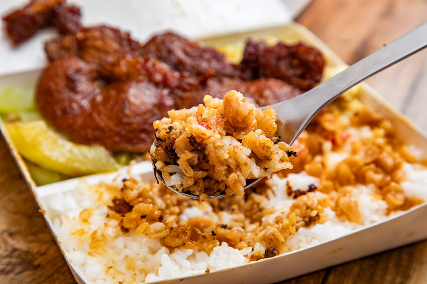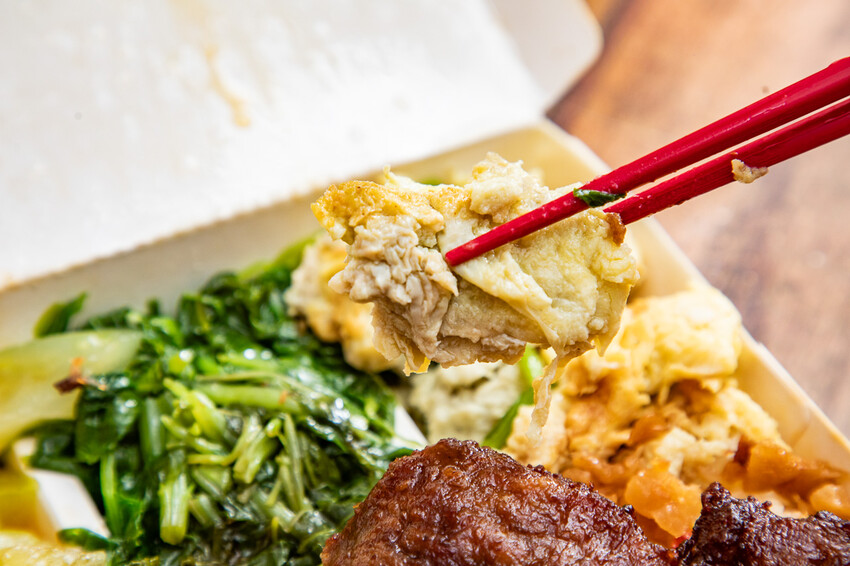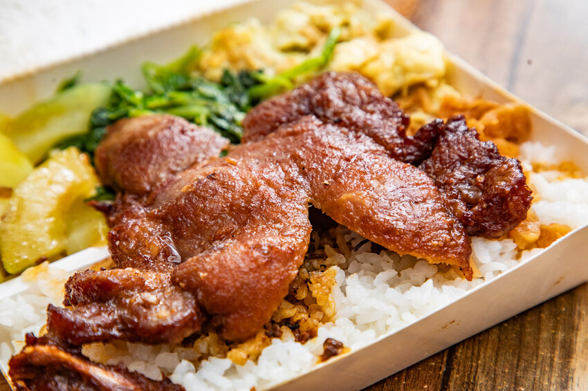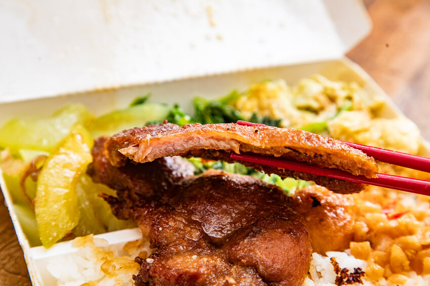 夾起來滷排骨是非常有份量的那種,加上濃郁醬香飄出,光聞就讓人食指大動,滷排骨的味道既鹹又不會讓人感到膩,而且它的口感令人驚喜,咬起來非常厚實,這與傳統鐵路便當裡的排骨有明顯的不同,滷排骨控強烈推薦嘗試看看!