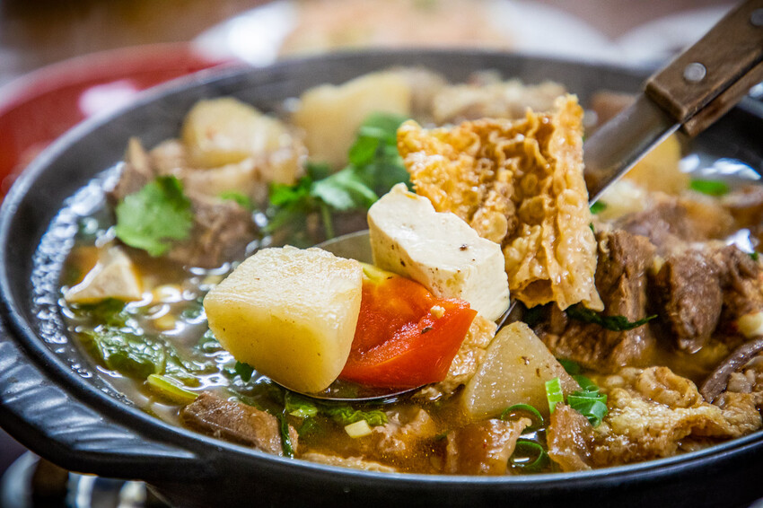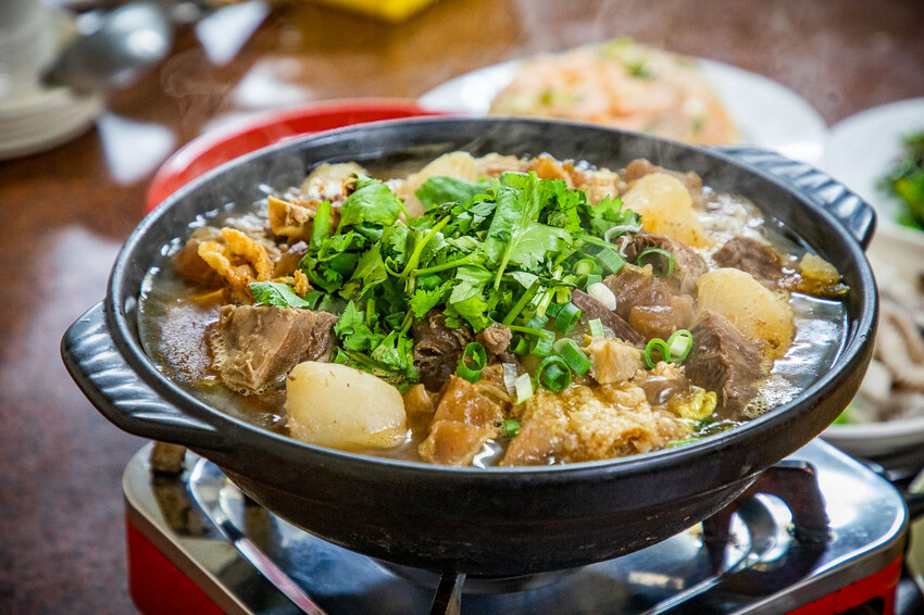 牛肉中富含一定的肉汁,在烹煮過程中會釋放出來,使牛肉在口中加多汁,也增加了湯頭濃郁風味,裡面還加了大量的番茄,讓湯頭喝起來帶有清爽的果酸香氣,這鍋真的有夠強!