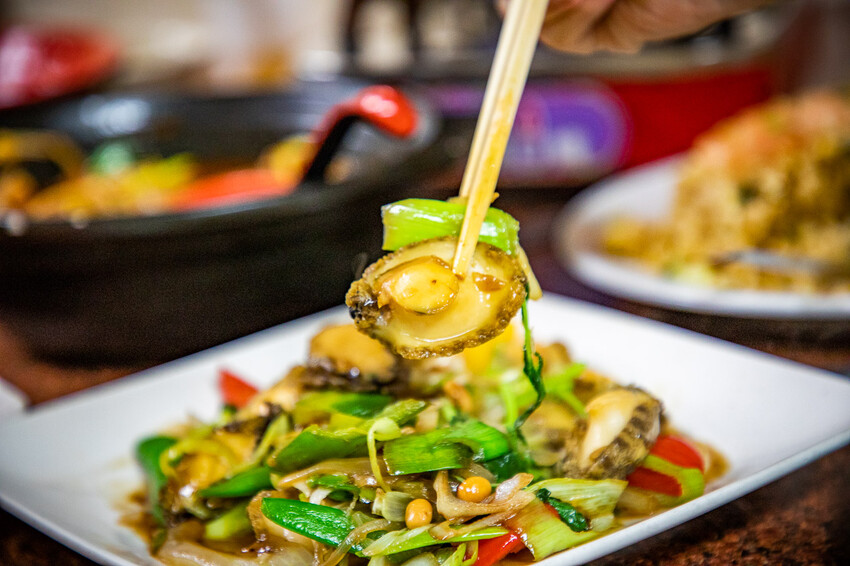 平日中午只有我們一桌,老闆招待一份醬燒九孔鮑,醬燒九孔鮑有好幾個,九孔鮑口感偏軟炒的很入味,Q嫩好吃也很下飯!