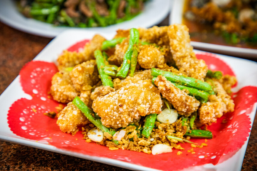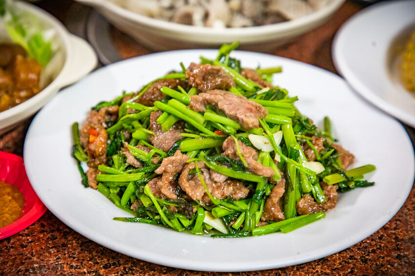 招牌炒牛肉,牛肉特別選用溫體沙朗牛部位,吃起來特別嫩,牛肉本身帶有濃郁的肉香,與空心菜的清爽味道相融合,加上醬汁調味十分下飯