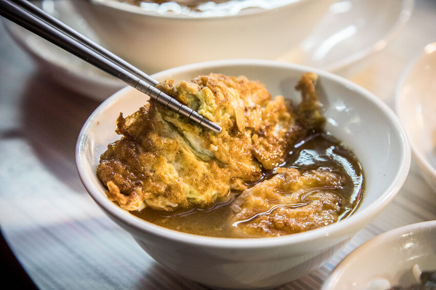 麻油蛋也是一絕,是將煎過的荷包蛋放進麻油高湯裡烹煮,荷包蛋吸收了高湯的味道,蛋香搭配麻油香還有嫩嫩多汁的口感,好吃!