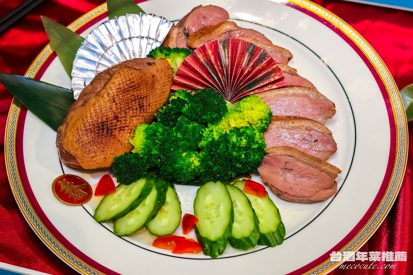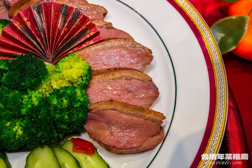 這道台酒白蘭地櫻桃鴨胸是先用特製的調味料醃製再滷過,並在滷製的過程中加入玉山白蘭地和各種香料,鴨肉比平常吃到的更為軟嫩,而且非常入味!切的厚實但不會乾柴,是屬於口味較重的櫻桃鴨,很適合拿來下飯。
