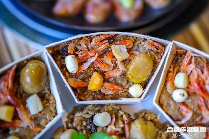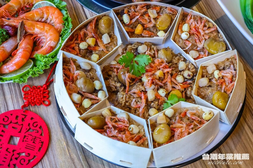 米糕可以算是很多家庭過年必備的料理,而台酒這款用料豐富的「台酒花雕櫻花蝦珠貝米糕」,裡面除了有蓮子、栗子、珠貝、櫻花蝦等配料,更是加入花雕酒調味,口感Q彈的米糕很香很好吃,配料的量也給得特別多,台酒更是貼心的把米糕分成好幾個小盒方便食用。