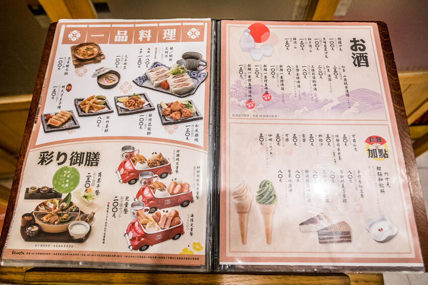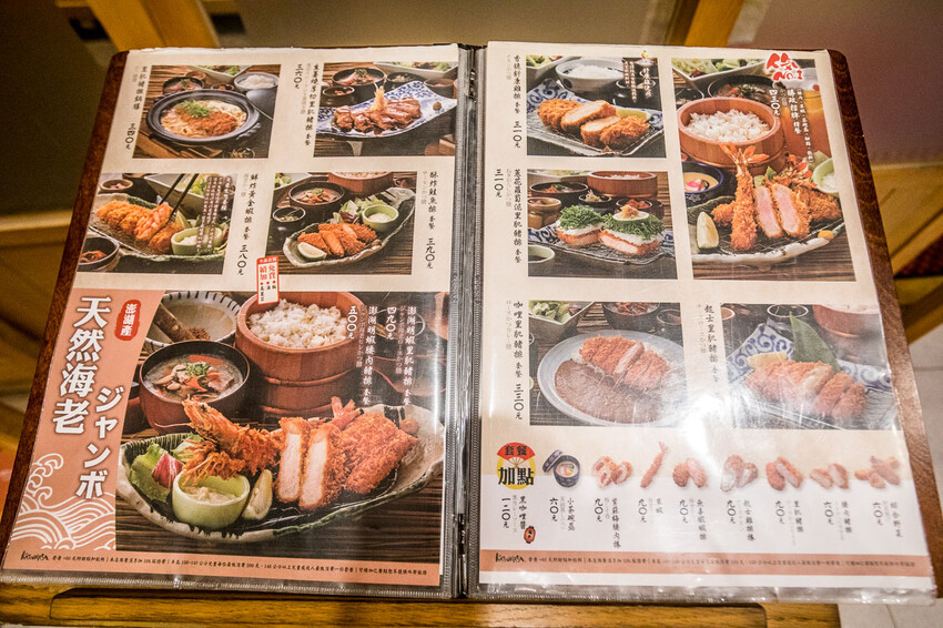 靜岡勝政日式豬排 中壢大江店的菜單就擺在外面,我蠻喜歡菜單放在外面,可以先翻翻有什麼新菜色,順便看一下價位,主打的當然是豬排,有香草豬跟伊比利豬的豬排,所以價位稍微高一點,客單價大概400元左右