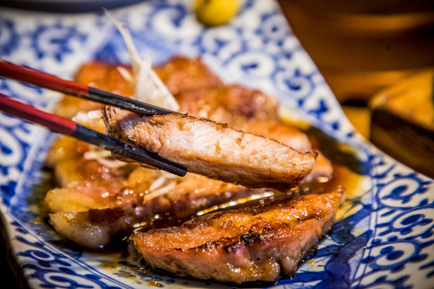 伊比利厚切里肌豬排,進入主題吧,如果是第一次來的朋友,我強烈建議點這個伊比利厚切里肌豬排,她真的超級厚又大塊,而且是用西班牙伊比利黑豚Bellota等級的,光看那厚度就很爽!肉質鮮嫩多汁,因為是吃橡實長大,因此孕育出特殊橡木子風味,多汁鮮甜又柔軟