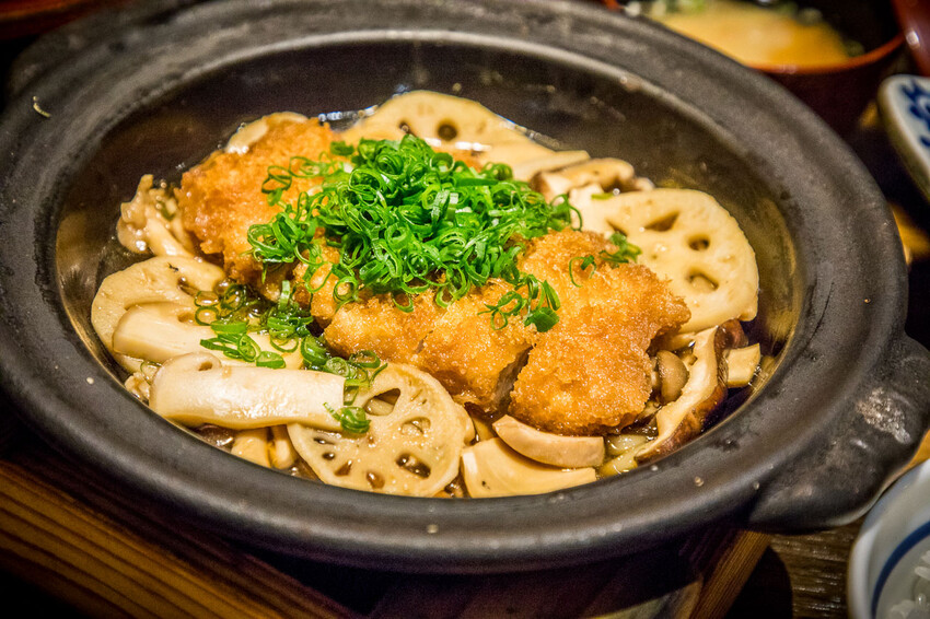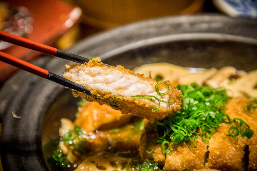 豬排的麵衣吸收多種菇類的甘甜風味,加上有醬汁的浸潤,豬排吃起來超柔軟,底下還有驚喜,有放烏龍麵!烏龍麵吃起來也很Q彈入味