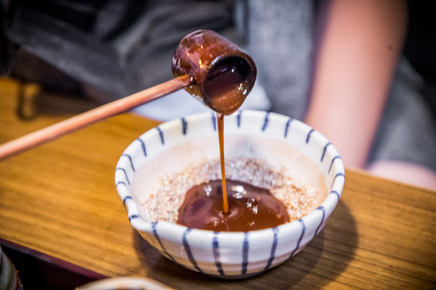 如果有點炸豬排就會送上小研缽跟芝麻,稍微把芝麻磨碎,再隨自己喜好加豬排醬,等等就可以用來沾豬排吃