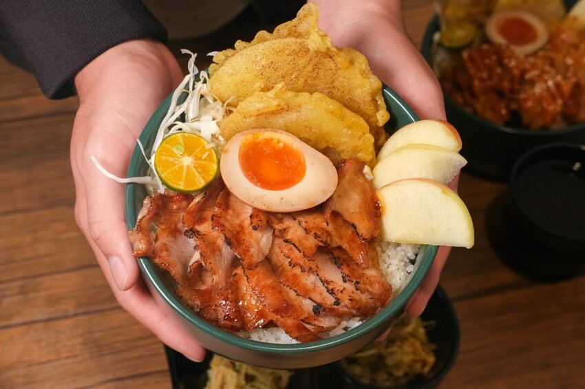 【肉嘞】主打各式各樣的香噴噴丼飯,包含牛豬雞和海鮮品項,提供肉品配飯或是肉品配菜的組合,也可以直接單點,丼飯最低只要100元就能吃到超佛心!