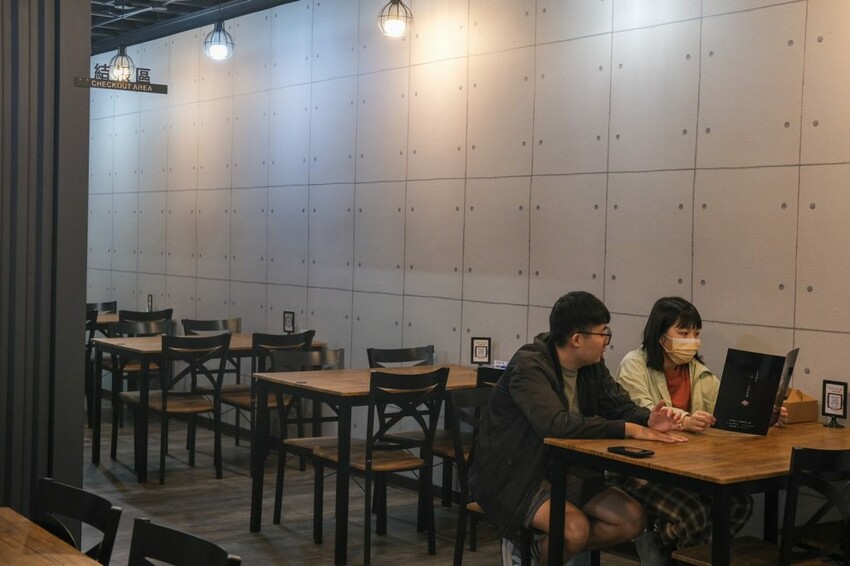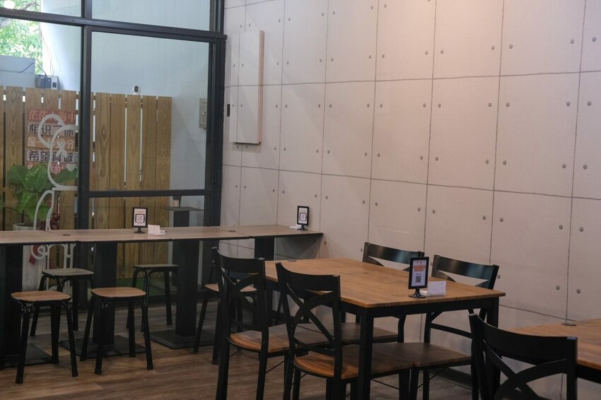 ▼【肉嘞】用餐環境以水泥牆搭配木質桌椅,打造出乾淨又簡約的風格,包含吧檯座位和四人座位,無論獨自前來或聚餐都很適合。