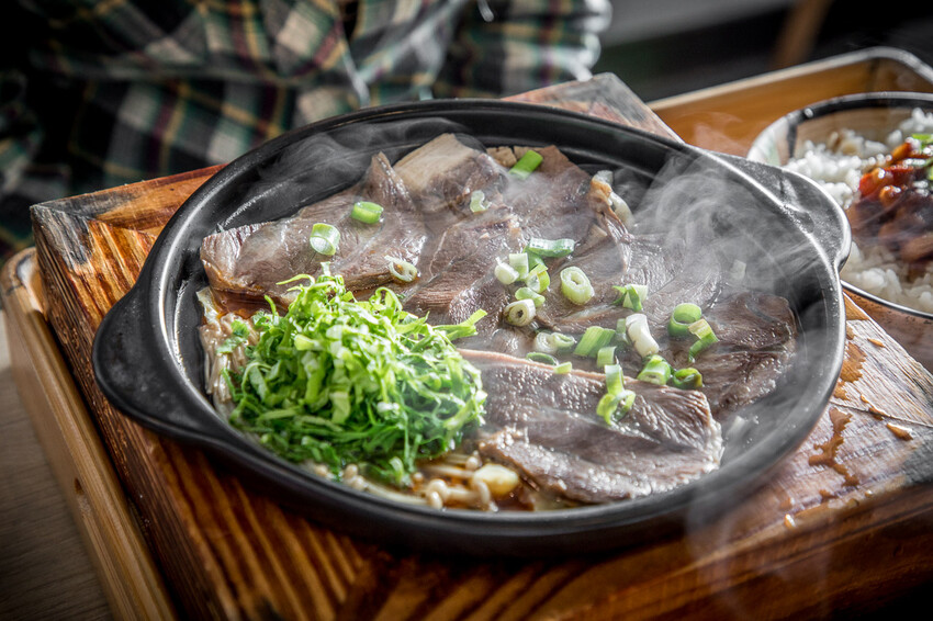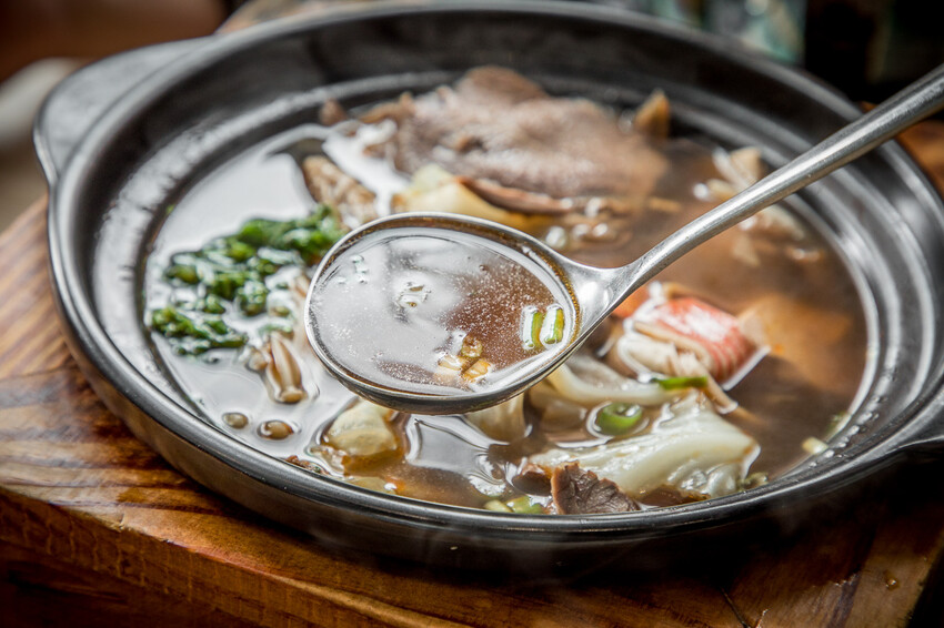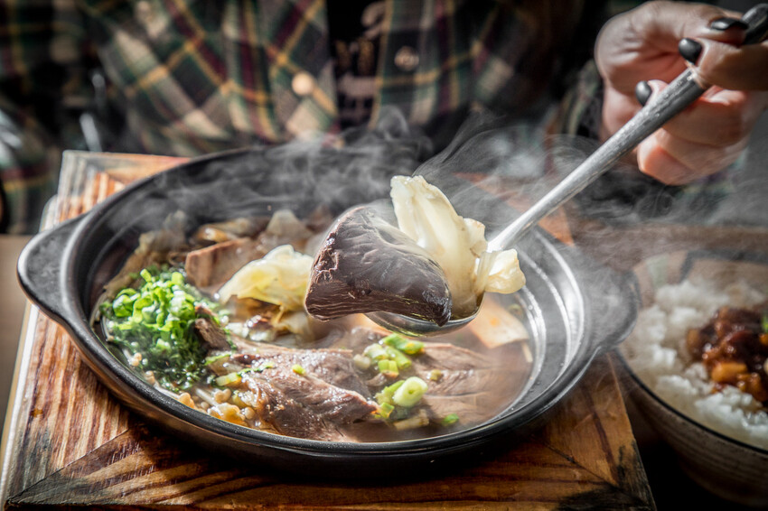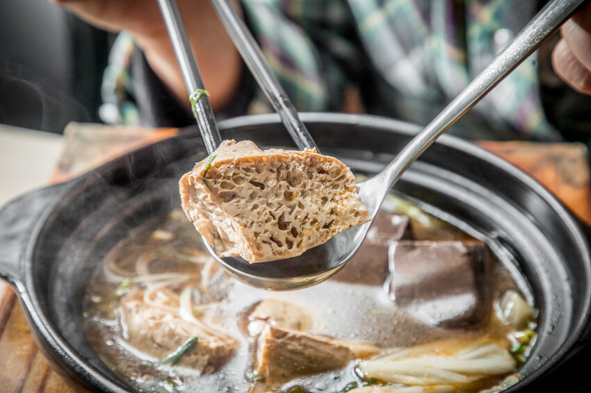 牛肉片是用牛腱!還是厚切的那種,牛腱吸收了麻辣湯底的味道,一整個就是多汁嫩口,裡面的鴨血也超厲害的,又嫩又軟,帶有麻辣感,豆腐則是吸飽了湯汁的味道,一咬在口中就爆汁