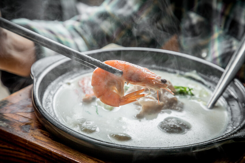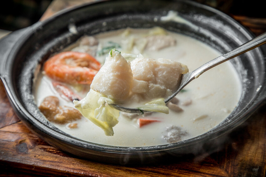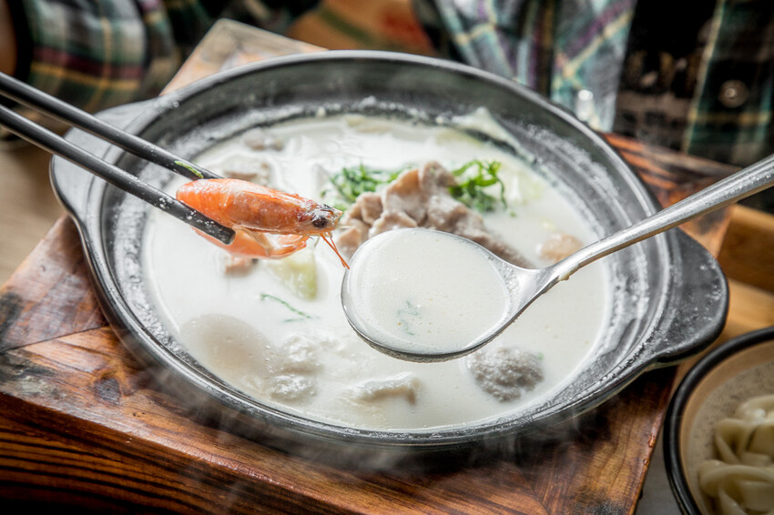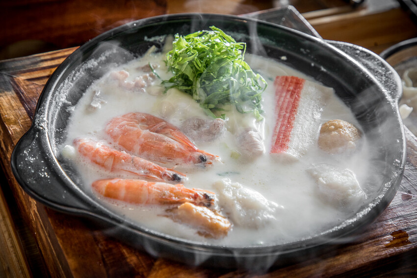 起司牛奶鮮蝦魚片豬肉鍋,來之前強者我朋友有提醒一定點牛奶鍋系列,聽說非常的厲害,果然!美味程度完全不會輸給麻辣鍋!一上桌那股撲鼻的奶香氣就讓人食指大動!