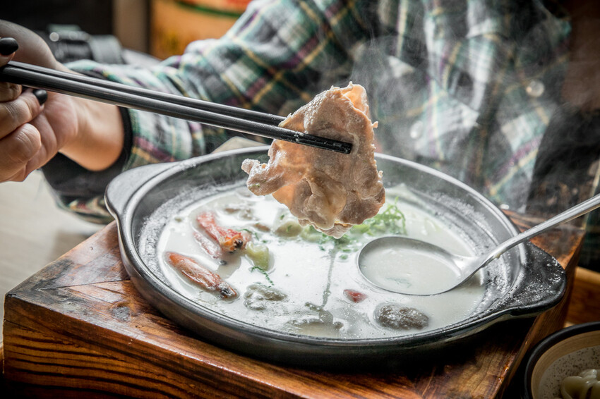 這牛奶鍋應該罕有敵手了,已經可以跟一般頂級火鍋店的高單價的牛奶鍋PK了,喝起來非常香醇而且不膩,加上有跟蔬菜海鮮等配料一起煮,超鮮超好喝!然後豬肉片搭配牛奶鍋真的是絕配,嫩中帶有乳香,不需要沾醬也超好吃
