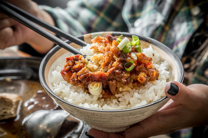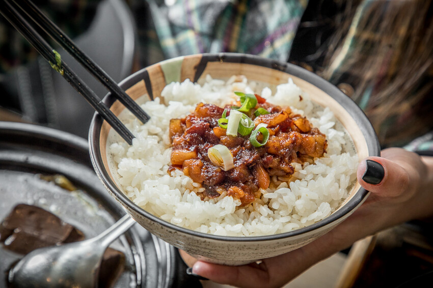 附餐我點的是加價的麻辣滷肉飯,這個非常讚!米飯是用花東池谷米,香氣足又Q,然後淋上香噴噴的麻辣滷肉,肥瘦相間的滷肉,加上那股帶勁的麻辣香,扒上一口完全停不下來