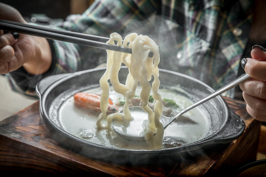 對了,點牛奶鍋附餐可以選拉麵,拉麵吃起來很有彈性,可以放在牛奶鍋裡沾著吃,滑溜順口