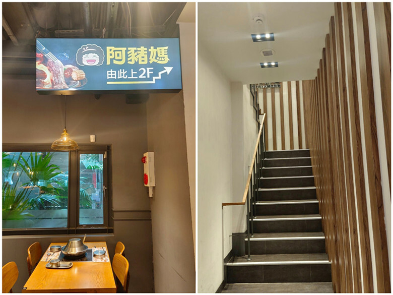 一樓和二樓分屬不同餐廳,要去阿豬媽還得經過一樓的「兩餐」,上樓梯後才是阿豬媽台中店