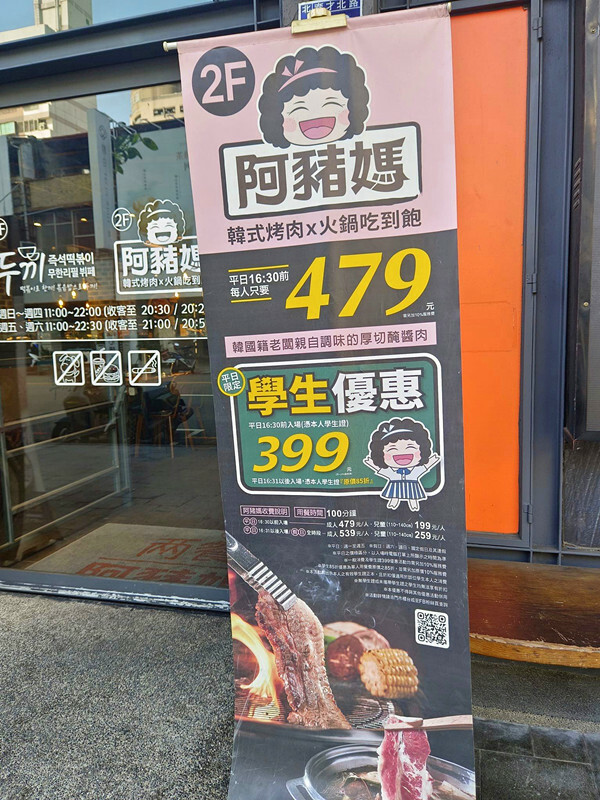 左邊的是學生優惠,右邊的是敬老專案,只要出示證件都是$399吃到飽
