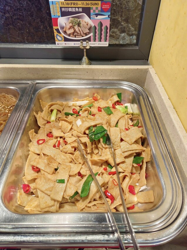 至於拌炒韓國魚板就在飲料機旁邊的熟食區