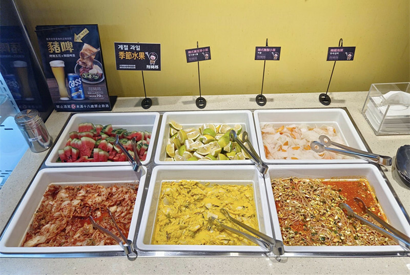 火鍋料區旁邊就是小菜水果區了,當天水果有二種西瓜和綠皮柳丁