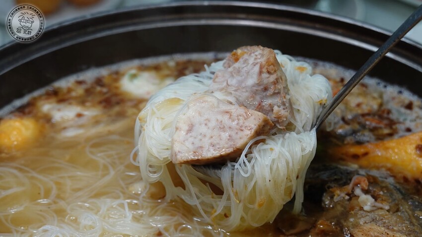 湯裡煎至金黃香酥的鯧魚還有半煎炸過的芋頭還有非常多配料和米粉,