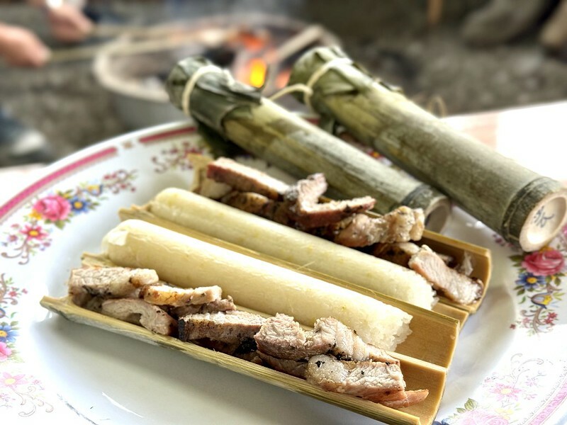 木頭碳烤的山豬肉,搭配著竹筒飯,