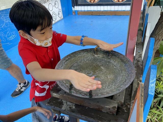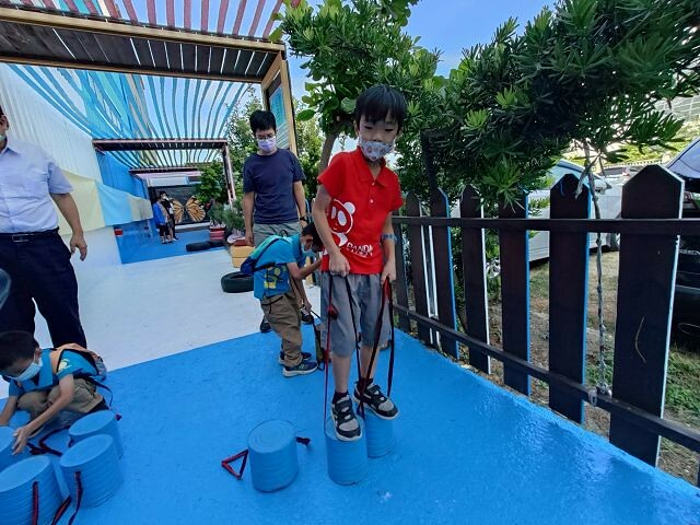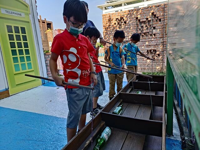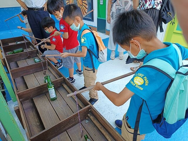 吊酒瓶遊戲有些難度,考驗著耐心和穩定度,小孩們很認真、非得要成功的模樣,真是有趣。最後大家也都成功完成任務。