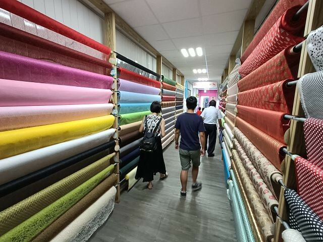 進入「緞帶王觀光工廠」的館內後,可以看到五花八門的緞帶,讓人大開眼界。