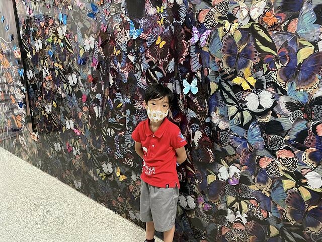 在走道上就是很好拍照取景的地方,每一面由不同花色構成的緞帶牆面,拍照起來都挺美的。