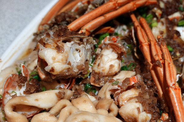 這道金蒜蒸龍蝦的龍蝦很大隻,龍蝦的肉質飽滿口感細膩,蒸好的龍蝦肉口感Q彈紮實,蒜泥香氣環繞在口中,相當地好吃。