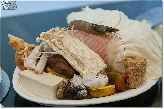 除了基本火鍋料和蔬菜之外,還有提供鯛魚片和鮮蝦一隻~