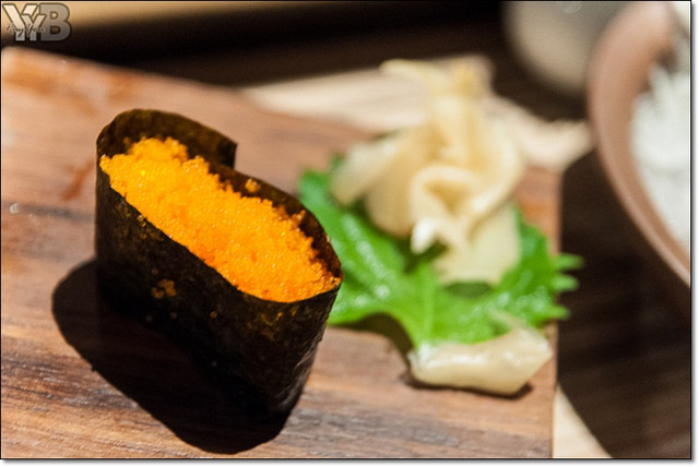 YoYo沒辦法吃生魚片,所以特別單點了蝦卵軍艦,有很多海苔她超愛~