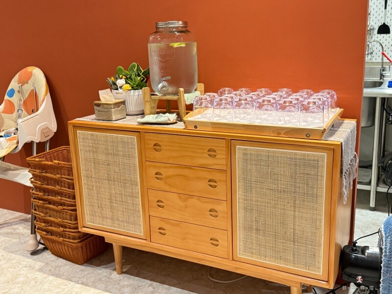 這裡消費是免收服務費的,一旁有提供檸檬水,還有嬰兒座椅~