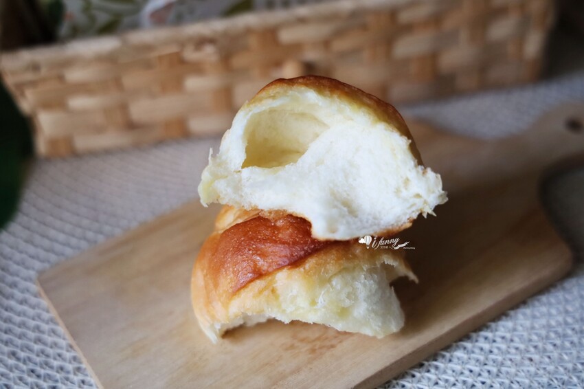 表面有點像小法國的餐包,外表真的烤得很金黃帶微脆感,裡頭的麵包體比起一般常吃更紮實一些,而鹹奶油超香,而且也好吃!不過艾方妮喜愛較鬆軟的口感。