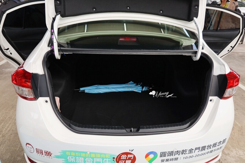 金豐租車真的很貼心,在後車箱放置了兩把雨傘,不怕突然遇到下雨天。寬敞的後車箱我們放了三個登機箱,兩個大後背包,還有空間可以放上我們的伴手禮。