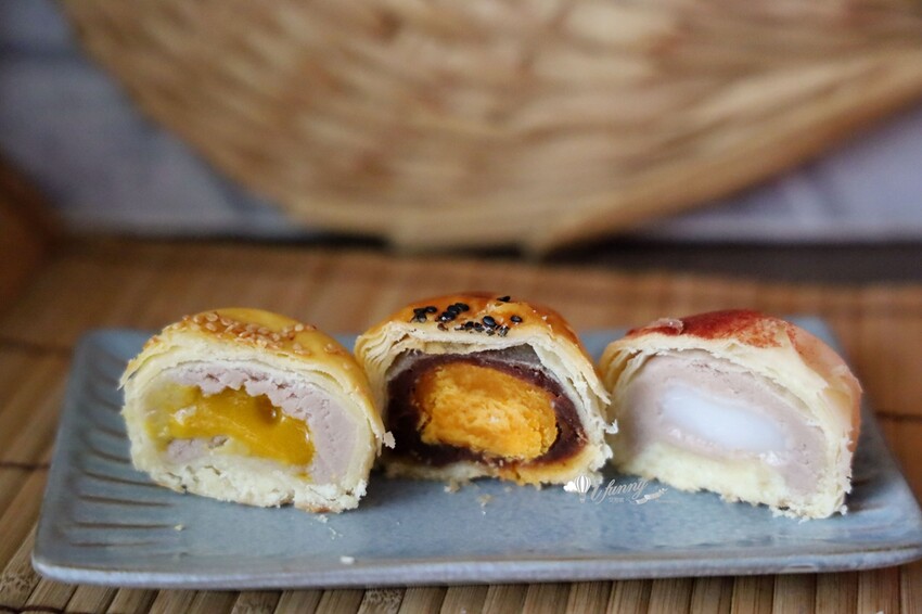 金門拔絲芋是採用金門芋頭包入了流沙蛋黃,剖面實在太邪惡!芋頭跟鹹蛋黃超搭,濃香馥郁!高梁蛋黃酥真的吃得到高梁的酒香,酒氣並不重,很好吃!芋Q寶是芋頭夾了麻糬,家中少女很喜歡!
