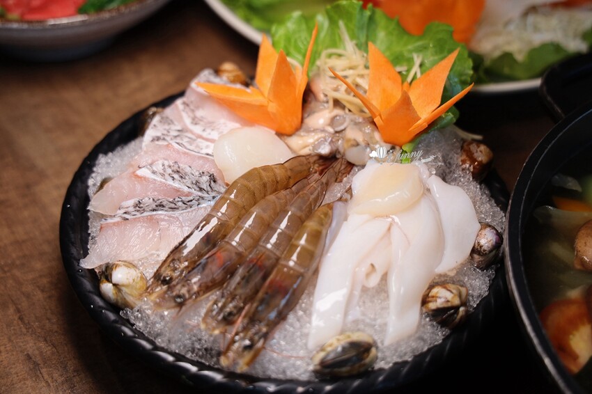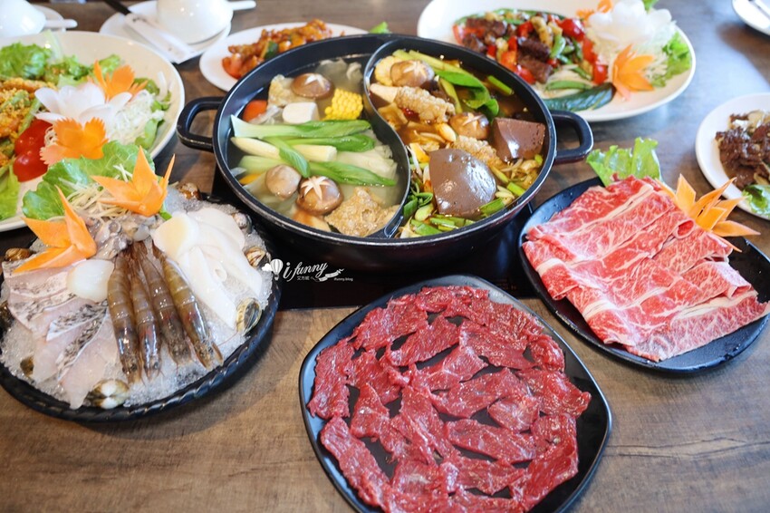 鴛鴦鍋一上桌大家都驚呼了一下,這是海鮮湯底與麻辣牛骨湯的火鍋,是不是太豐盛了!