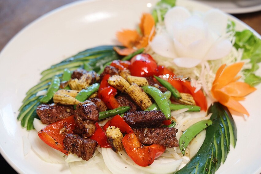 骰子牛口感紮實,以黑胡椒調味,很有鐵板料理的鑊氣,咬起來有嚼勁。搭配甜椒、玉米筍和豌豆。色彩繽紛更誘人食慾!