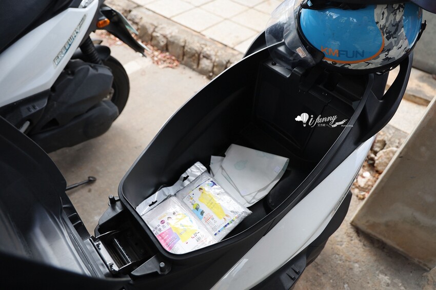 機車內還有提供一次性內襯及兩件雨衣(雨衣有用到才收費,一件$20)